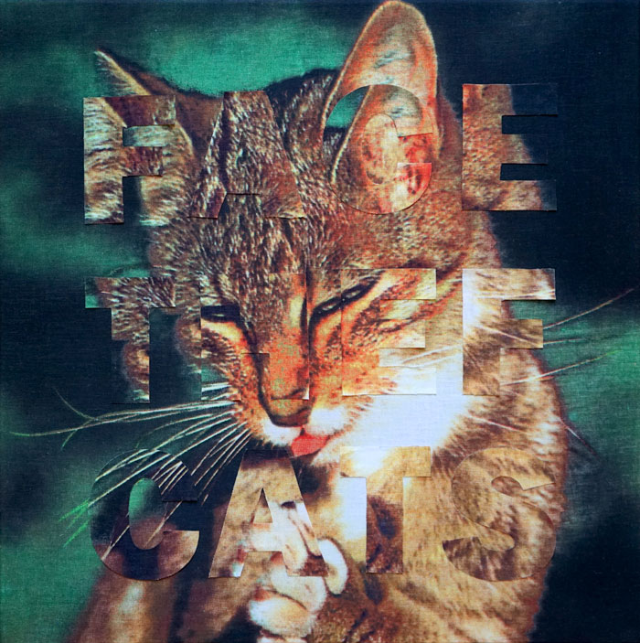 Coco Bergholm / 2018 / FACE THEF CATS / collage with printed fabrics / 60x60cm