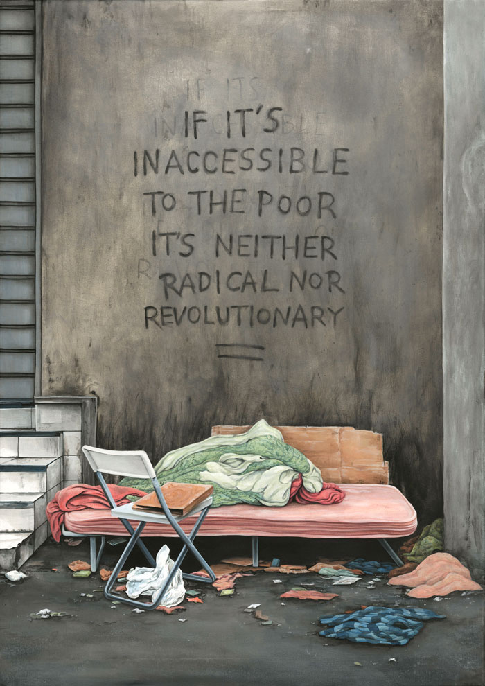 Coco Bergholm / 2019 / IF IT'S INACCESSIBLE TO THE POOR IT'S NEITHER RADICAL NOR REVOLUTIONARY / acrylic on canvas / 85x60cm